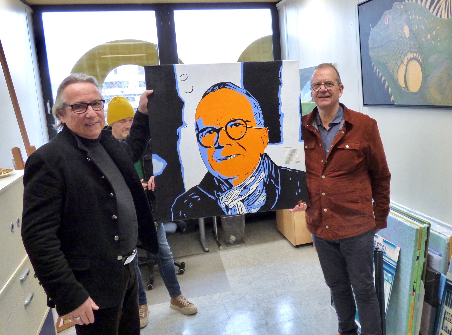 Auch der dritte monatliche Kunstwechsel hat zur Eröffnung wieder etliche Kunstschaffende, Kulturverantwortliche der Stadt Schwabach und Kunstfreunde angelockt. Selbst Oberbürgermeister Peter Reiß, Kultur-Referent Knut Engelbrecht und Kulturamtsleiterin Sandra Hofmann-Rivero ließen es sich nicht nehmen, in diese besondere, fast familiäre Kunstszene einzutauchen unter der Regie vom Quartiermanagement Altstadt mit Eva Göttlein, Bruno Fetzer und Kai Maier. Für den Monat April präsentierte Tom Hartmann, ein gelernter Kommunikationswirt, Autor und Maler in Evis Auszeit von Evi Grau-Karg seine großformatigen und plakativen Pop-Art-Werke, um gleichzeitig als Sänger mit seinem Freund Uwe Singer als Duo „Speed Club“ mit alten fetzigen Rock-Nummern zu begeistern. Diese Musik ergänze perfekt seine sozial-kritischen Bilder unter dem Titel „Pop Stars & Losers“. Der Künstler betonte, dass seine Bilder bewusst wie gedruckt wirken sollten wie bei seinen Vorbildern Andy Warhol oder Roy Lichtenstein. Doch dahinter stünde auch seine Kritik an der Digitalisierung, die zwar positive Entwicklung mit sich gebracht habe, aber andererseits für den Verlust der Allgemeinbildung und von Berufen verantwortlich sei, was zu „Losern“- Verlierern führe. Seine „Trilogie des Scheiterns“ zeige solche „Loser“ mit den beiden Portraits vom alkoholkranken Willi und Linda, die gezeichnet sei nach jahrelanger Zigaretten,- Drogen- und Medikamentenabhängigkeit. Andererseits Pop Stars wie Udo Lindenberg, Keith Richards oder Nina Hagen hätten ebensolche Probleme, doch lebten sie mit dem Erfolg von Rock`n`Roll, was – nach Hartmann - aber immer eine sehr große Nähe zum endgültigen Scheitern bedeute. Dieses künstlerische Spannungsfeld habe daher für diese vierwöchige Ausstellung den Titel „Pop Stars & Losers“ gegeben. Ergänzend wird hier der Künstler am 25.04. um 19 Uhr aus seinem Buch „Vollgas ohne Ziel“ lesen natürlich umrahmt mit alten Rock-Hits.