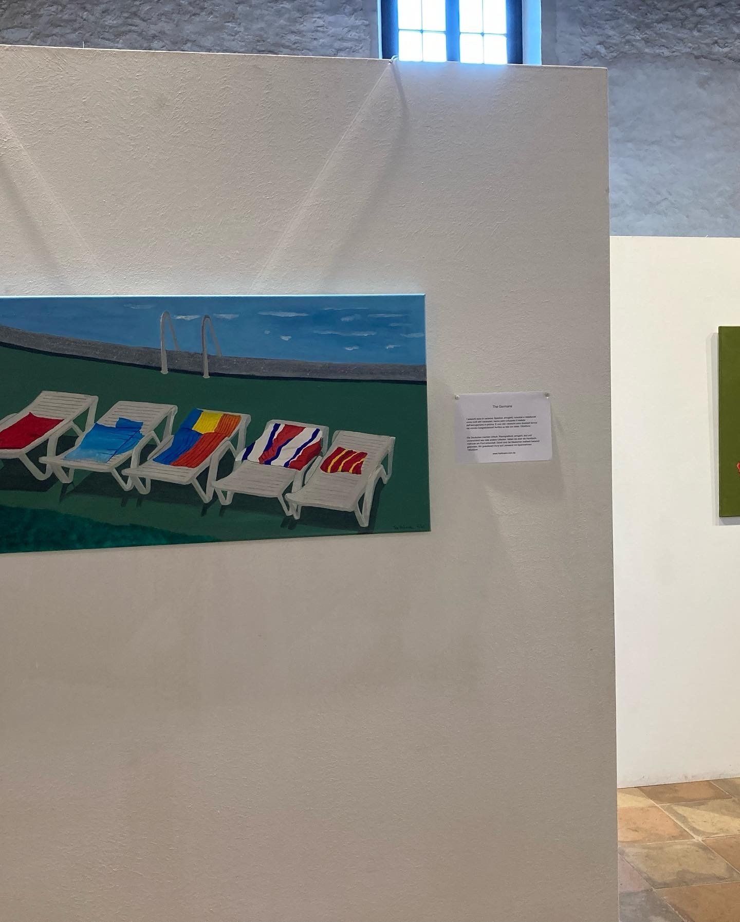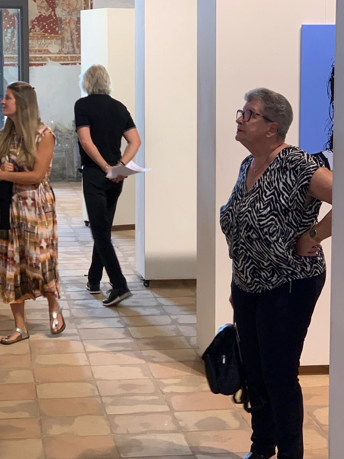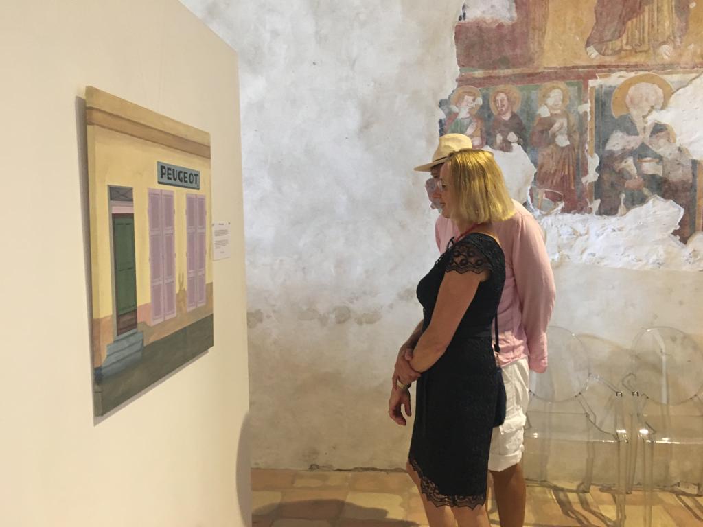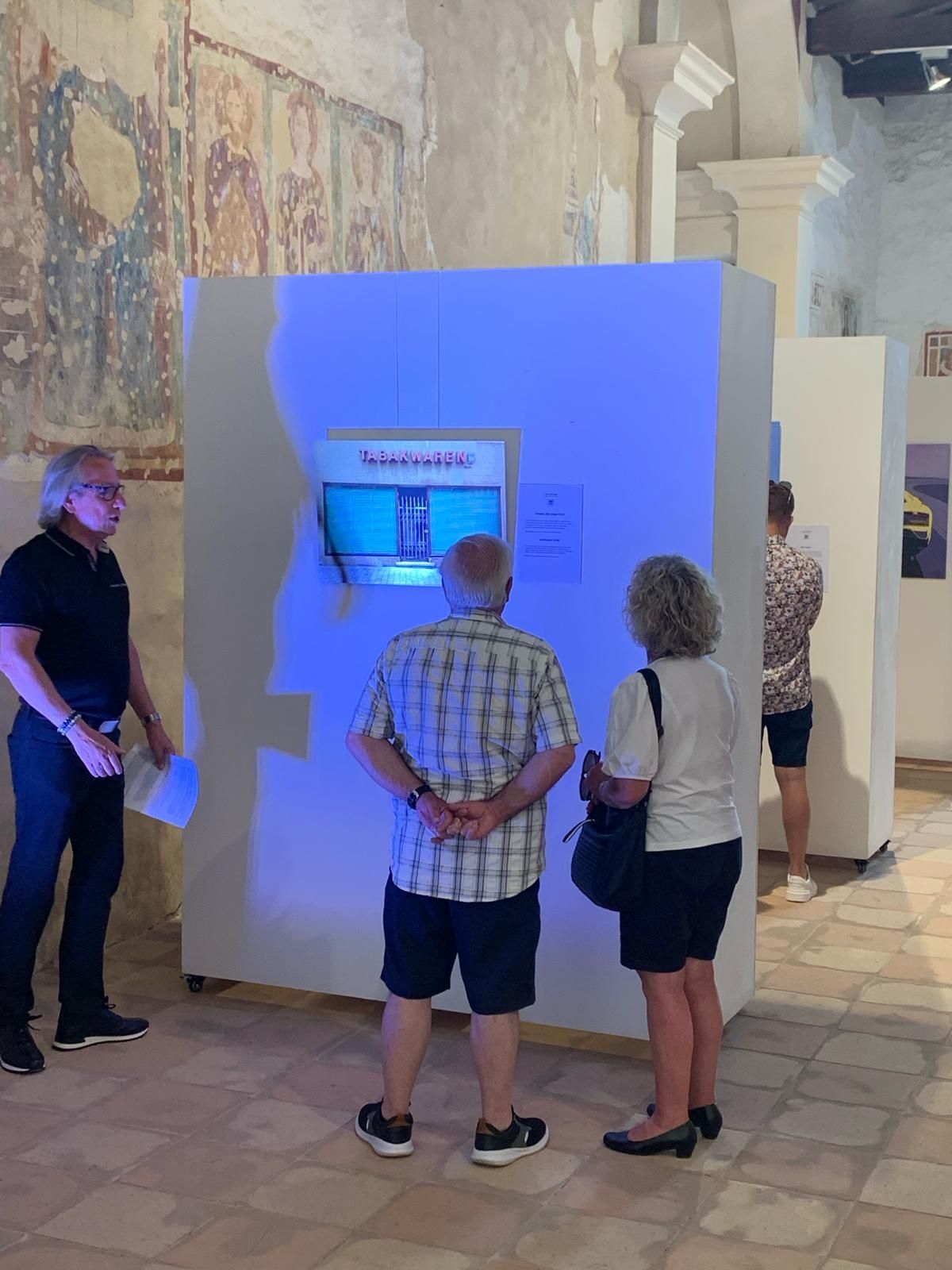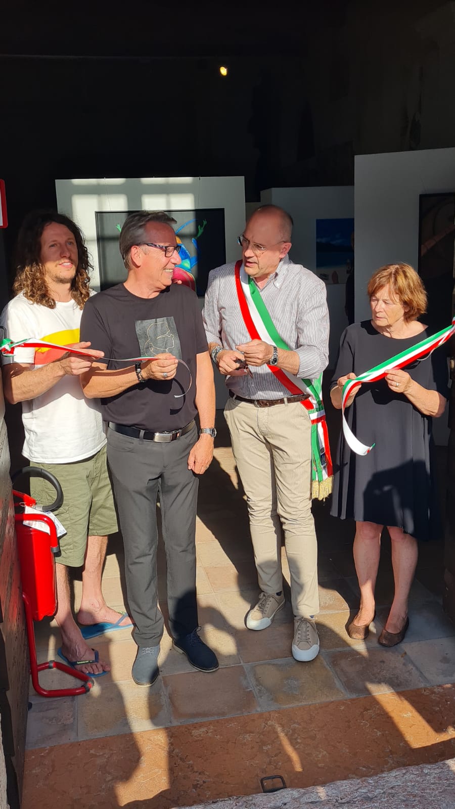 Die Ausstellungseröffnung mit dem Bürgermeister Stefano und Fausto, meinem Manager, sowie Donatella, die Kulturmanagerin von Torri del Benaco. Unter dem Motto "Una questione di punti di vista" oder auch, „Ansichtssache“ zeigt Tom Hartmann vom 18.06. bis 02.07.22 im Auditorium via Albisano, in Torri del Benaco (VR), großformatige Bilder 80 x 80 oder 120 x 80cm, farbenfroh in Acryl auf Leinwand gemalt. Ausschnitte aus einer Welt die eigentlich ganz klein ist: Insekten, in dieser Größe wirken sie anders, fremd, bunt und manchmal sogar bedrohlich. Fassaden von Gebäuden, Schaufenster, Nachtbilder, ungewöhnlich in Motiv, Perspektive und Darstellung. Ergänzt wird die Ausstellung durch die Fotoserie „Zeitfenster“, Fotografien von Schaufenstern die von längst vergangenen Zeiten erzählen, Digitaldruck im Format 65x45cm, farblich verfremdet auf Aluminium Verbund-Platte. Seine Sicht der Dinge ist ungewöhnlich, überraschend, manchmal bewusst merkwürdig. Was man darin findet ist „Ansichtssache“.