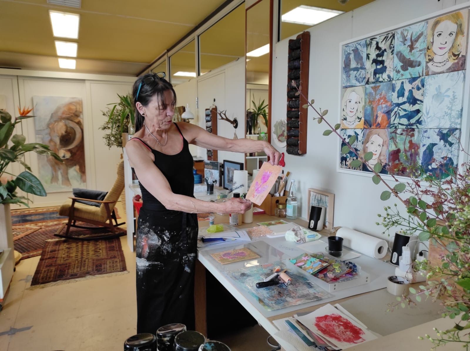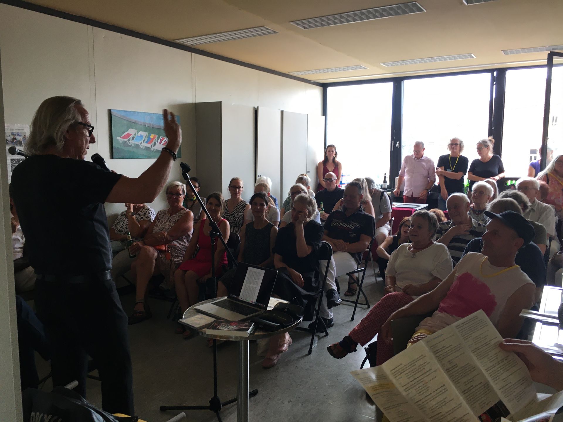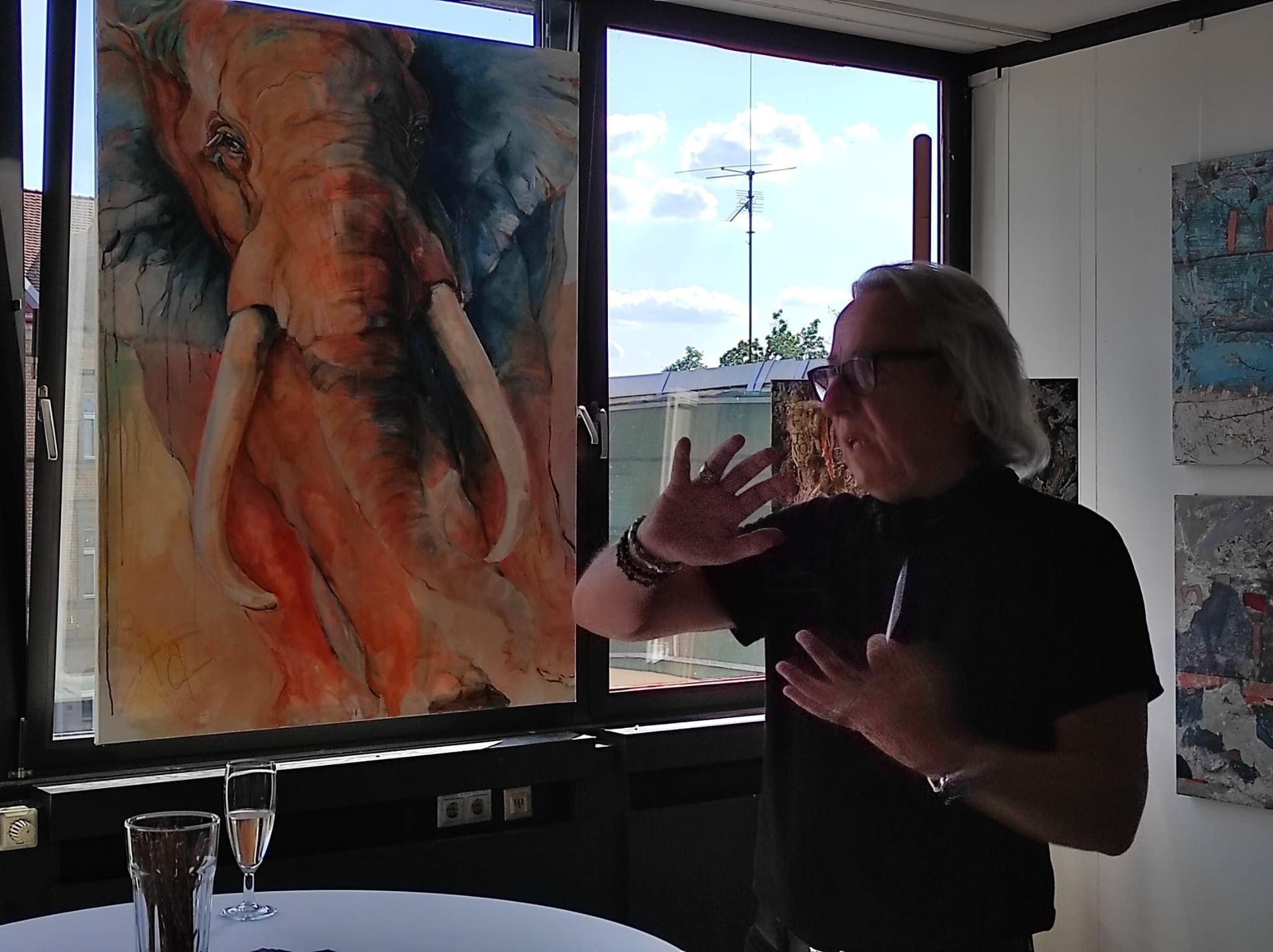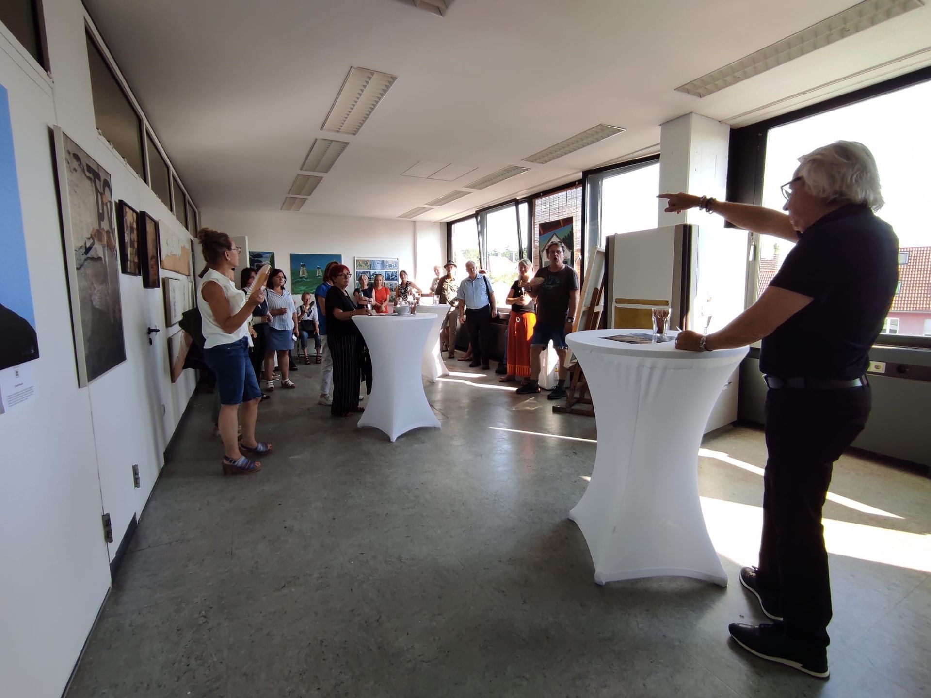 Ein heißes Wochenende in der Ateliergemeinschaft "stille Post": 30 Grad und viele Besucher. Ich habe die Ausstellung eröffnet und den Gästen ein paar Worte zu allen KünstlerInnen mit auf den Weg gegeben. Natürlich waren Bilder von mir zu sehen, diesmal POP ART, STRUTURES & STEEEL, meine allerneuesten Bilder zum Stahlwerk in Duisburg. Mein Workshop "von der Idee zum Bild" wurde gut angenommen, es kam zu angeregten Diskussionen und interessanten Gesprächen. Die Kolleginnen mit den Workshops "Druckwerkstatt mit Kirsten, Goldblumen falten mit Barbara und Upcycling, Geldbeutel aus Tetrapak mit Steffi waren ständig ausgebucht.
