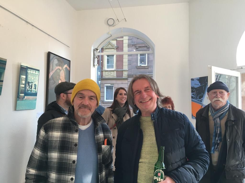 Ich bin angekommen: meine neues Atelier in Schwabach! Die Eröffnung ist auf gute Resonanz gestossen, meine Gäste waren Frau Eveyln Grau-Karg, SPD, Mitglied des Stadtrats Schwabach, Frank Gerald Hegewald, Vorsitzender des Künstlerbundes Schwabach, Herr Robert Schmitt, Schwabacher Tagblatt, Barbara Feldmann, Goldrad, eine Objekt und Schmuckkünstlerin, Raum 2, der Max Mavior, ein Künstlerkollege der Pop Art aus dem Raum 6 und meine Freunde Holger, Andrea und Usu, Geru und Rüdiger. Endlich konnten sich meine Freunde Usu und Rüdiger mal mit ihren gemalten Kollegen aus der Abteilung "digitale Pop Art analog gemalt" vergleichen. Meine Fotoprints auf Alu-Verbundplatte fanden großes Interesse. Vielleicht auch, weil sie sehr stark Gold changieren, je nach dem wie das Licht darauf fällt. Gold ist ja das große Thema in der Goldschlägerstadt Schwabach. Nach der Feier waren wir noch lecker Pizza essen bei Da Luigi. Schwabach ist meine zweite Heimat, hier fühle ich mich sofort zu Hause.